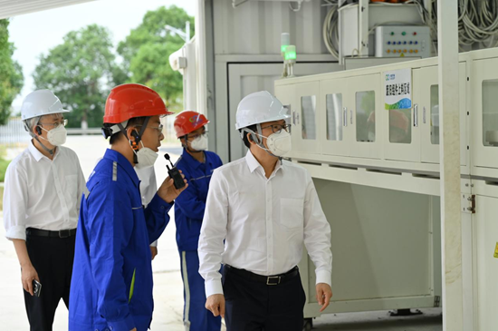 在鄂期間,廖家生還赴太陽能公司華中區監利電站實地調研,詳細了解了光伏組件回收裝備生產運行流程和關鍵技術,參觀了光伏項目現場、主控室和科技創新示范區,與一線技術和運維人員深入交流,并指導市場拓展、科技創新、精益管理、隊伍建設、基層黨建等工作。