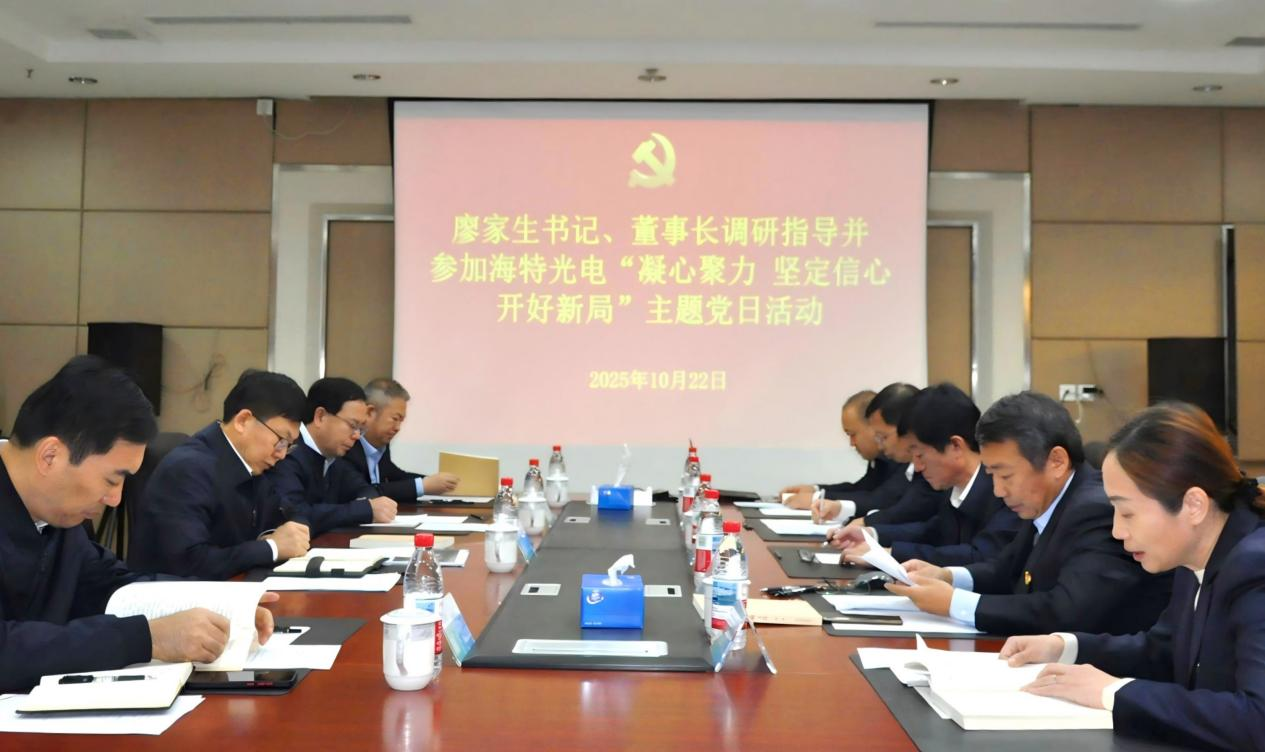 廖家生對(duì)兩家企業(yè)下一步工作提出具體要求:一是堅(jiān)持高標(biāo)準(zhǔn)高目標(biāo)引領(lǐng),聚焦新材料和大健康產(chǎn)業(yè),保持戰(zhàn)略定力,在完成“十四五”收官基礎(chǔ)上,扎實(shí)謀劃好公司“十五五”。二是加大科技創(chuàng)新力度,充分運(yùn)用AI技術(shù),積極引進(jìn)優(yōu)秀科技人才,深化產(chǎn)學(xué)研合作,不斷培育新質(zhì)生產(chǎn)力。三是狠抓市場(chǎng)開(kāi)拓,加強(qiáng)市場(chǎng)開(kāi)發(fā)人才隊(duì)伍建設(shè),健全考核激勵(lì)機(jī)制,千方百計(jì)擴(kuò)大市場(chǎng)規(guī)模。四是抓實(shí)精益管理,持續(xù)開(kāi)展數(shù)智化應(yīng)用,優(yōu)化產(chǎn)品工藝流程,嚴(yán)把產(chǎn)品質(zhì)量安全關(guān),深挖提質(zhì)增效潛力。五是緊盯目標(biāo)任務(wù),以“時(shí)不我待、只爭(zhēng)朝夕”的緊迫感抓好各項(xiàng)生產(chǎn)經(jīng)營(yíng)工作,全力以赴完成年度目標(biāo)。六是強(qiáng)化黨建引領(lǐng),深入學(xué)習(xí)領(lǐng)會(huì)習(xí)近平生態(tài)文明思想,第一時(shí)間抓好黨的二十屆四中全會(huì)精神學(xué)習(xí)宣傳貫徹,加強(qiáng)“三基”建設(shè),抓好黨業(yè)融合,鞏固拓展學(xué)習(xí)教育成果,護(hù)航企業(yè)高質(zhì)量發(fā)展。 調(diào)研期間,廖家生還參加了海特光電公司“凝心聚力、堅(jiān)定信心、開(kāi)好新局”主題黨日活動(dòng)。與會(huì)人員再次共同學(xué)習(xí)了《習(xí)近平生態(tài)文明文選》第一卷有關(guān)內(nèi)容。部分黨員代表立足本職崗位,圍繞“怎么看、怎么辦、怎么干”作了交流發(fā)言。