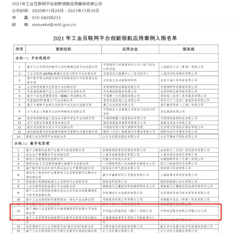 太陽能鎮(zhèn)江公司上榜工信部工業(yè)互聯(lián)網(wǎng)平臺 創(chuàng)新領(lǐng)航應(yīng)用案例 |